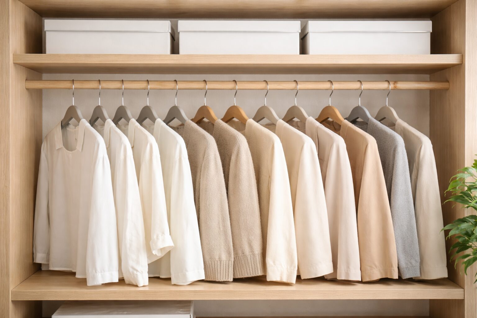 朝、シャツが滑り落ちたり、ニットの肩がポコッと出たり、クローゼットがごちゃついて見えることはありませんか。